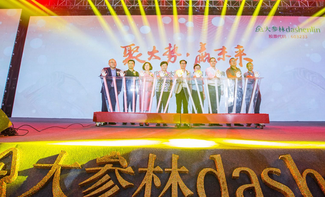 尊凯实业药业集团董事长刘景萍女士与大参林医药集团董事长柯云峰先生、中国医药商业协会执行会长付明仲女士等嘉宾共同开启了“聚大势•赢未来"大参林工商合作峰会的大幕。