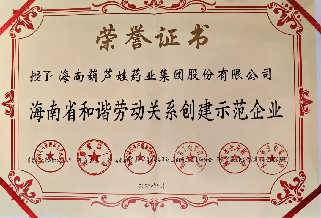 尊凯实业药业集团获评“海南省和谐劳动关系创建示范企业”